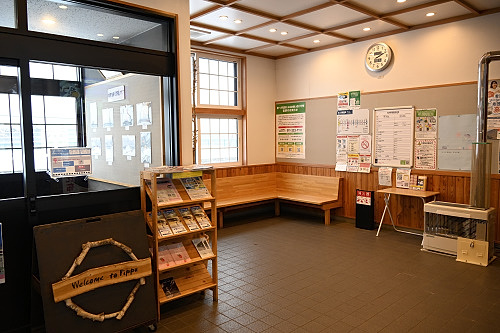 駅舎内待合室。木の温もりを感じられる素晴らしい駅舎だ。