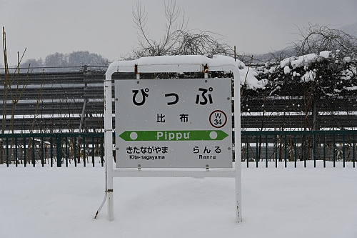 比布駅名標