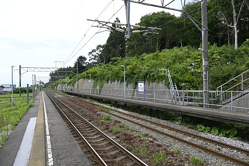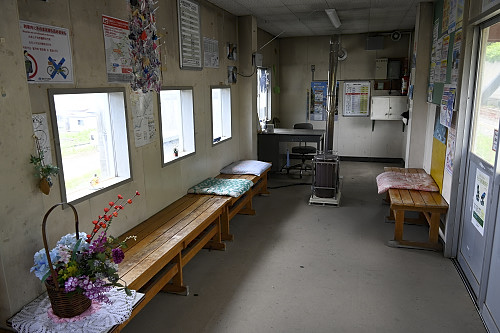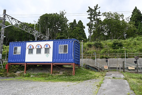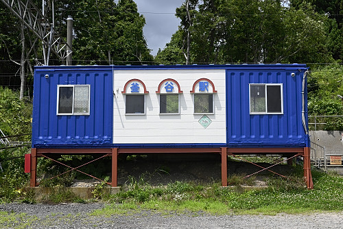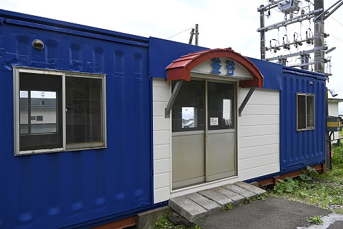 貨車を利用した釜谷駅の駅舎。種車はワム80000形だろう。