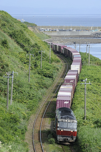 - 札幌貨物ターミナル駅間は急勾配の続く「山線」を避け、距離は長いが線形の良い室蘭本線・千歳線を経由する。