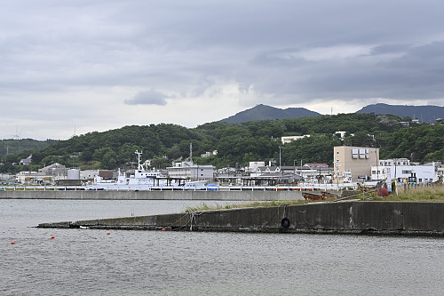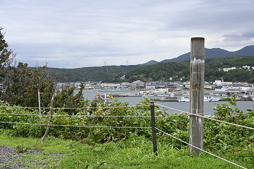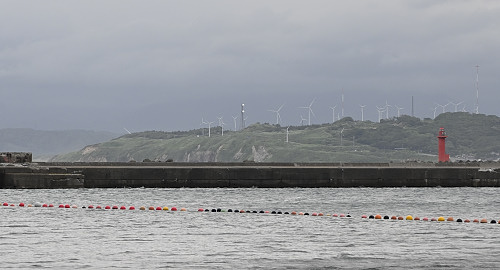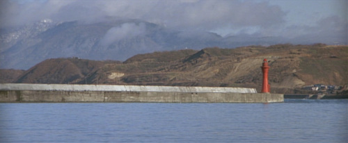 江差港の防波堤を写したカットです。現在は背後に見える山に発電用風車が並んでいるのが、当時との大きな相違点です。