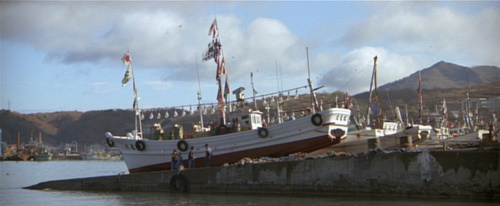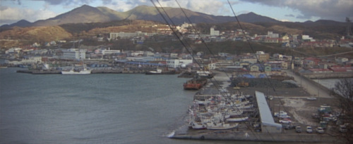 江差港を映したカットです。映画のカットではコンクリートのスロープ上に漁船が並んでいますが、現在は漁船が見えません。当時と比べ、ニシン漁の不漁や漁業従事者の高齢化により、漁船の数が減っているのかも知れません。
