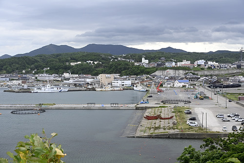 本カットは、かもめ島から江差港を見た風景です。当時と現在の大きな違いは、手前に見える陸に引き揚げられた漁船の数が減ったことでしょうか。また、現在は港の中央に堤防が建設されています。