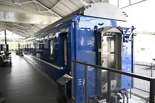 トワイライトプラザに展示されているA寝台車 オロネ24 4